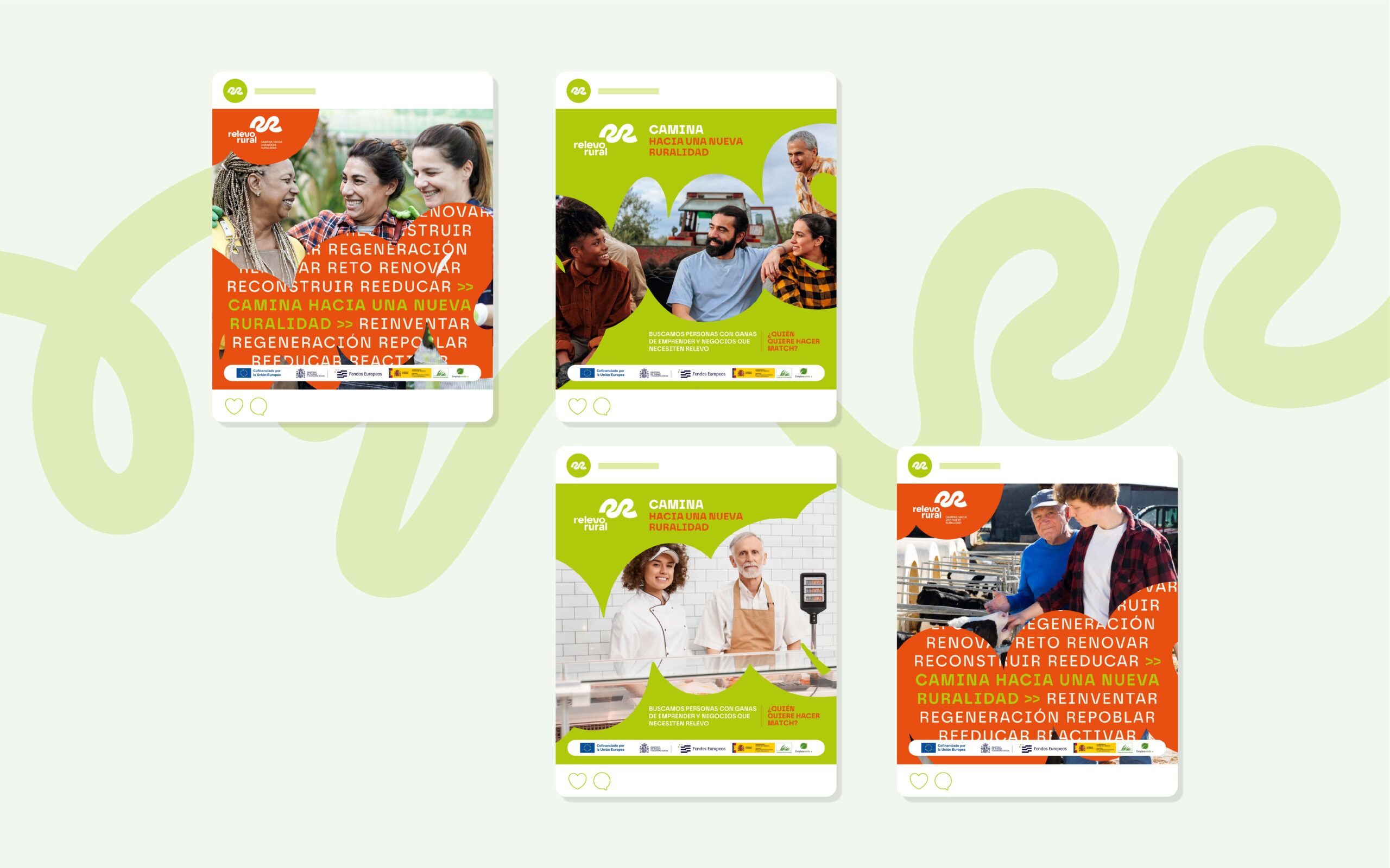El símbolo sintetiza este viaje: caminos que se recorren, ríos que confluyen y puentes que conectan. Una identidad pensada para acompañar procesos reales de relevo generacional desde el cuidado, la claridad y el compromiso con una nueva ruralidad posible.